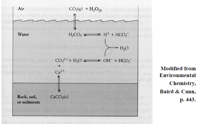 This is but one of them... you see, the atmosphere and the oceans exist in equilibrium. This means that increasing or decreasing the concentrations in one part of the 'cycle', will have flow on effects throughout the entire system. These are not trivial effects. The below diagram shows 5 reactions that take part in the carbonate system equilibrium. Now, I know you don't all have chemistry knowledge so I'll spare you the how and why, but what this means is that as atmospheric CO2 increases, it leads to Calcium Carbonate (CaCO3) dissolving.
